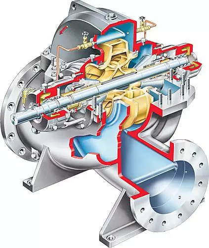 2、雙側進水式泵:又叫雙吸離心泵,即葉輪兩側都有一個進水口。